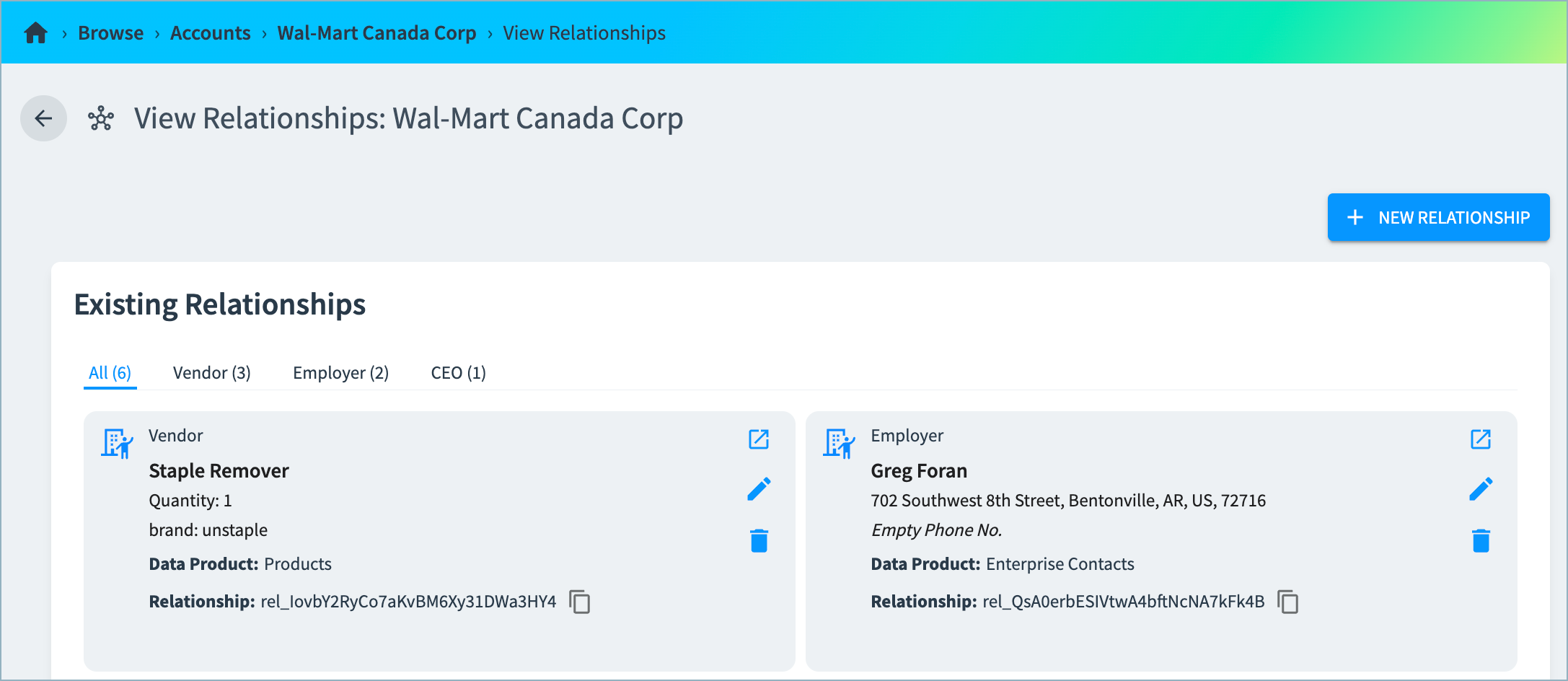 Soon, you will be able to create relationships between records in the Tamr Cloud UI. Currently, relationships can be managed only through the Tamr Cloud Relationships API.