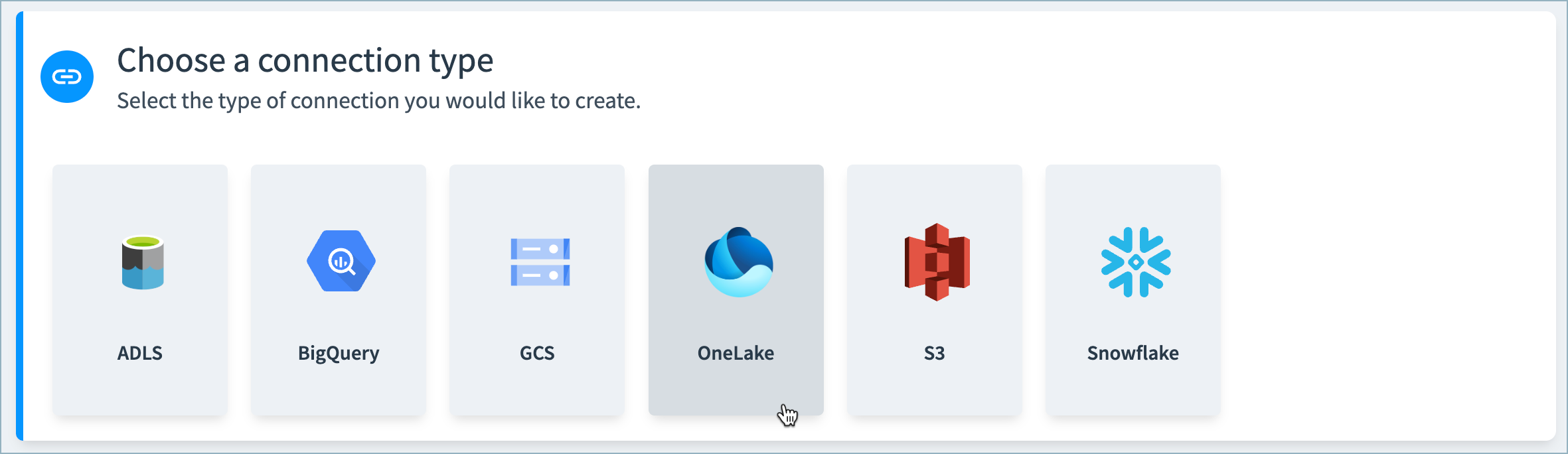 Tamr now supports configuring connections to OneLake for adding and exporting data. See Requirements for OneLake.