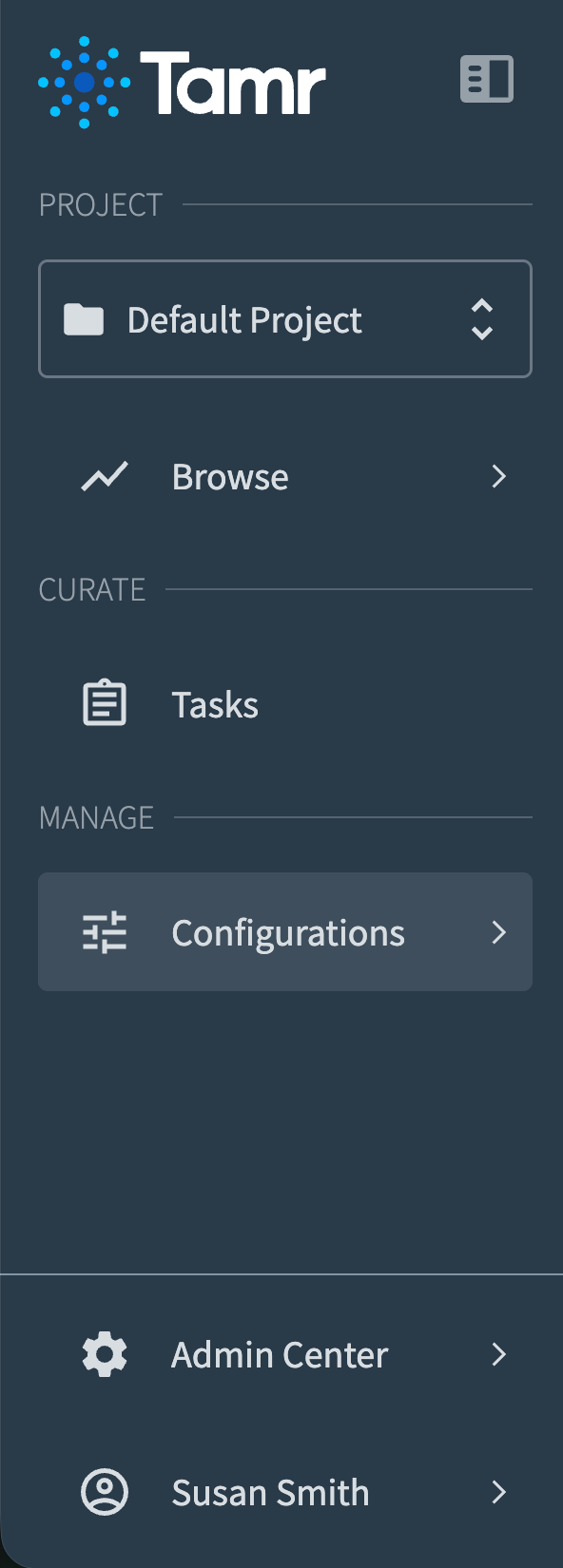 | Configurations > Destinations | Available if you are using the Tamr RealTime SOR. Create and manage destinations for publishing data from the SOR. |