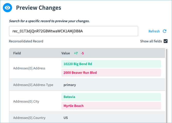 Preview Changes to Golden Record Rules