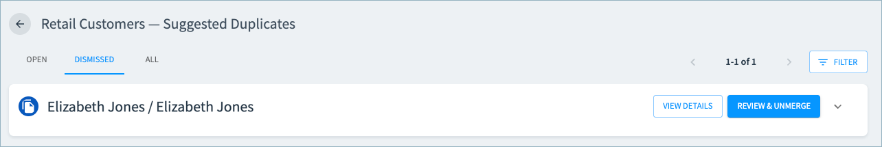 You can also see the merge details in the Curator Hub Suggest Duplicates queue, under the Dismissed section.
