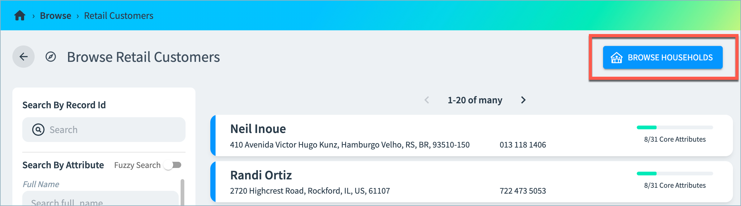 - Selecting the Browse Households option available on the data product’s Browse page, as shown in the image below.